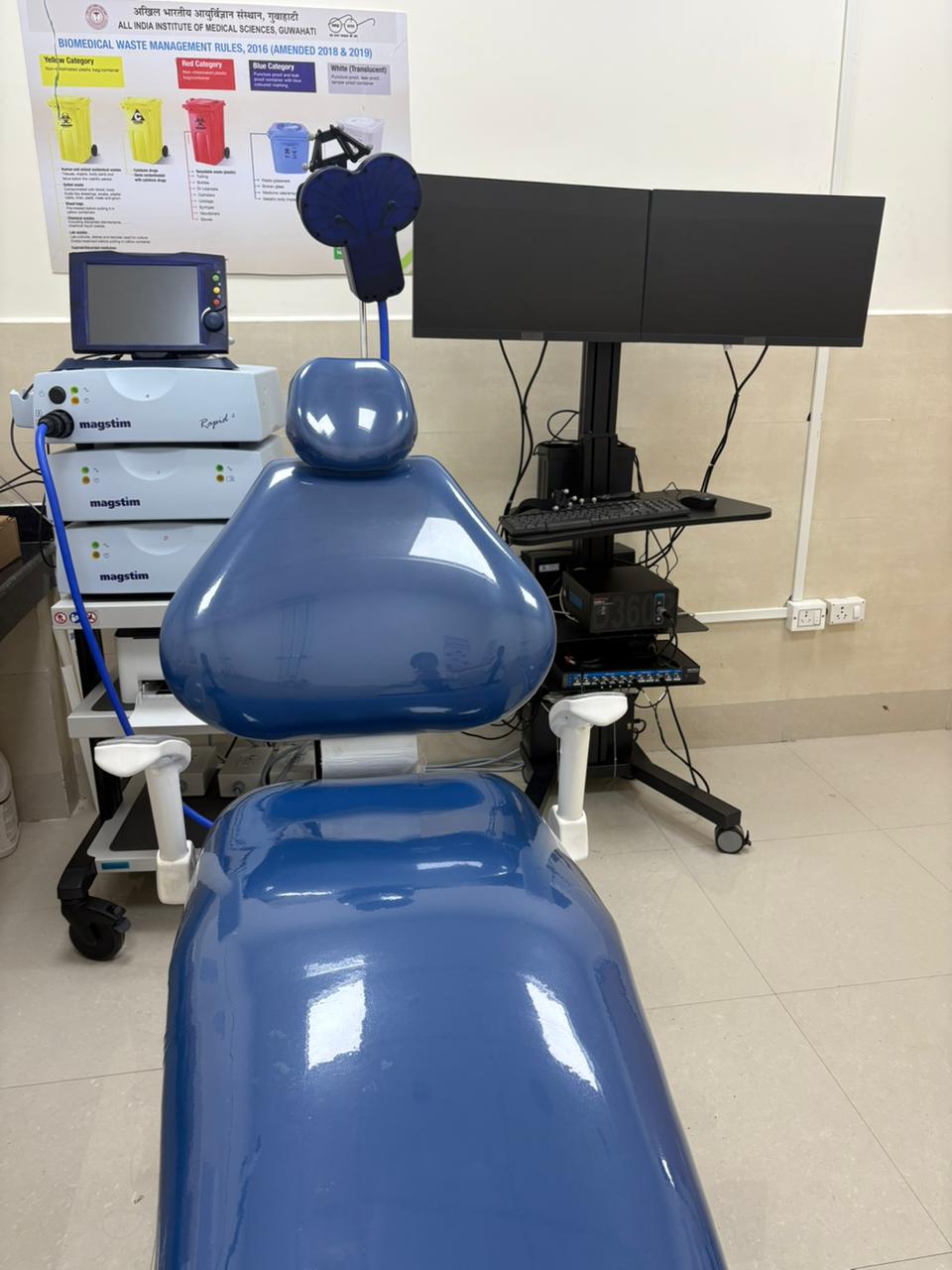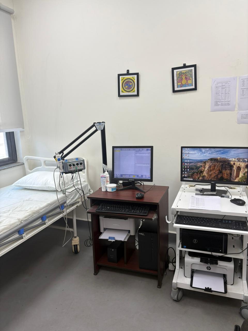 Neurophysiology Lab : There are three rooms in neurophysiology lab. Equipped with Video EEG machine, NCV/EMG/VEP/EP machine, PSG machine, RTMS machine.